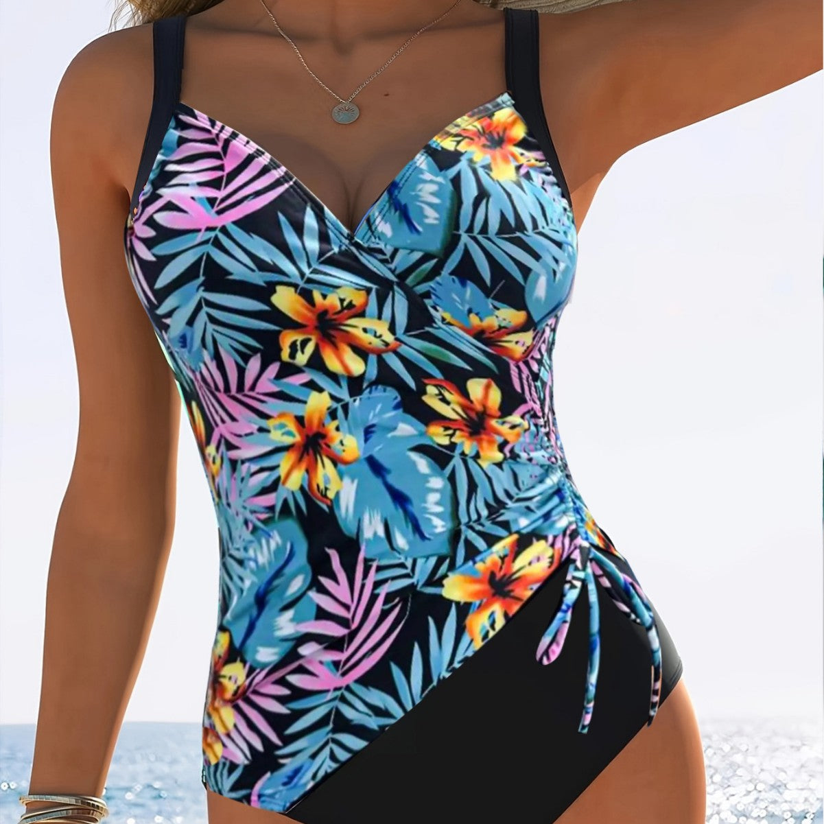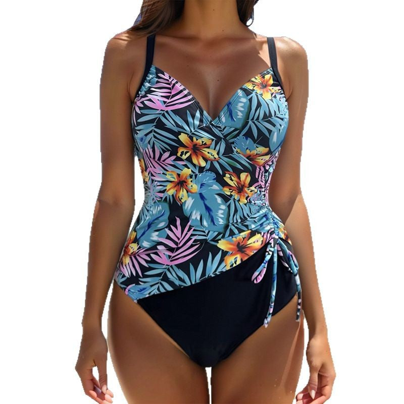 One-Piece Printed Solid Color Drawstring Gathered Slimming Sexy Bikini Women's