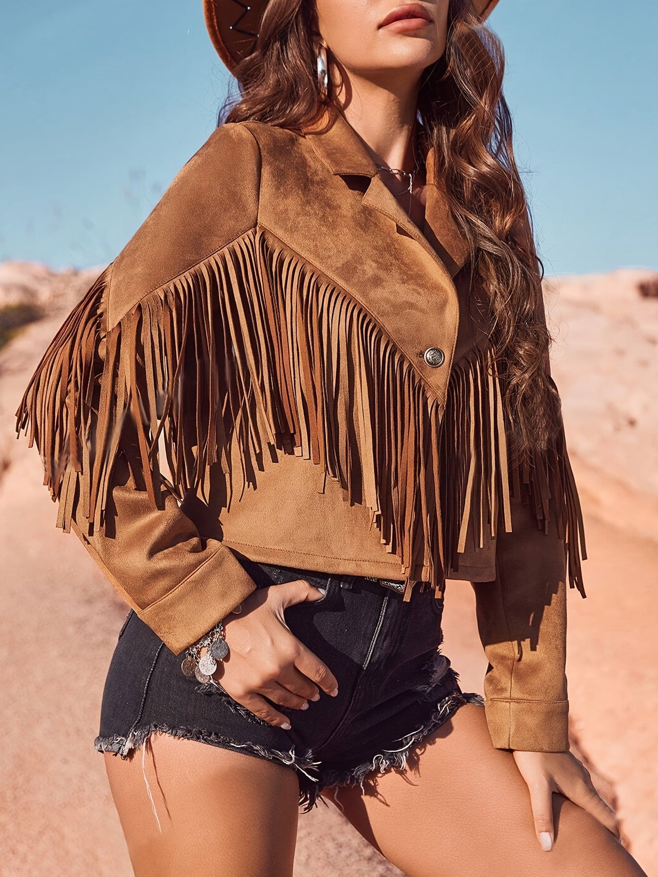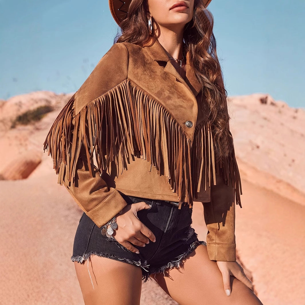 Street Style Suede Short Fringe Jacket for Women