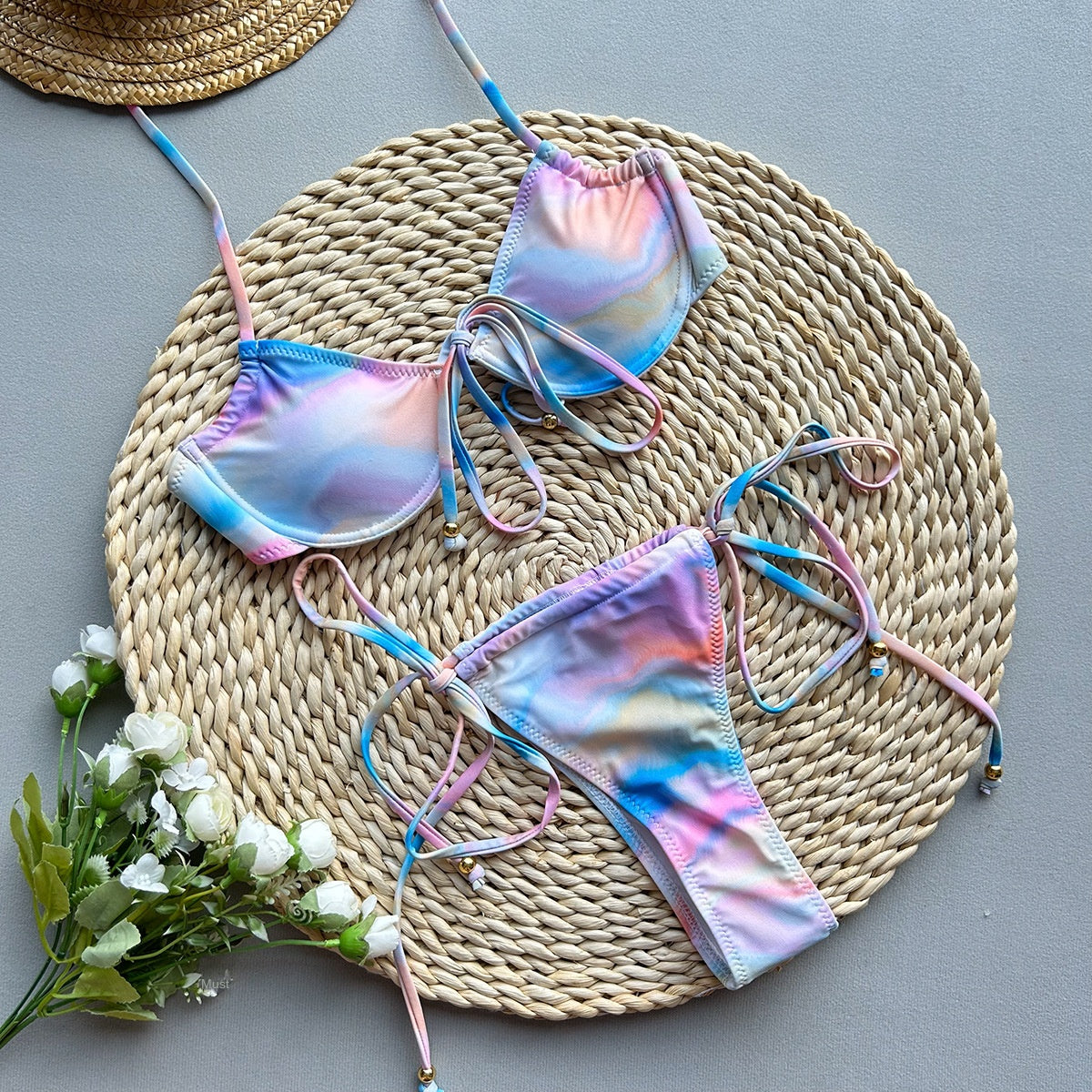 Style Bikini with Ties and Prints, Two-Piece Women's Swimsuit