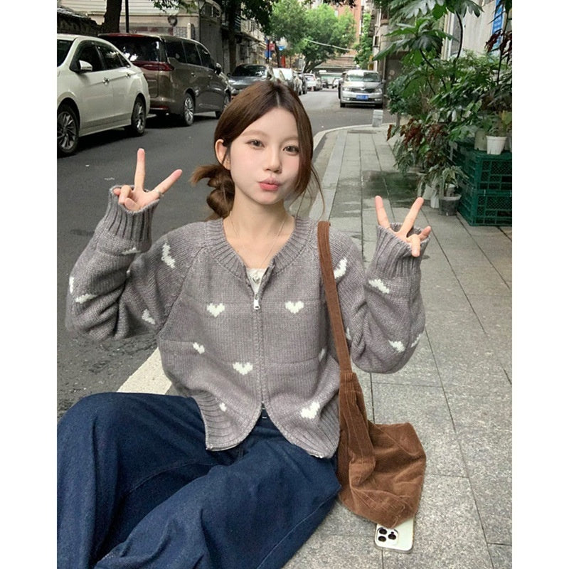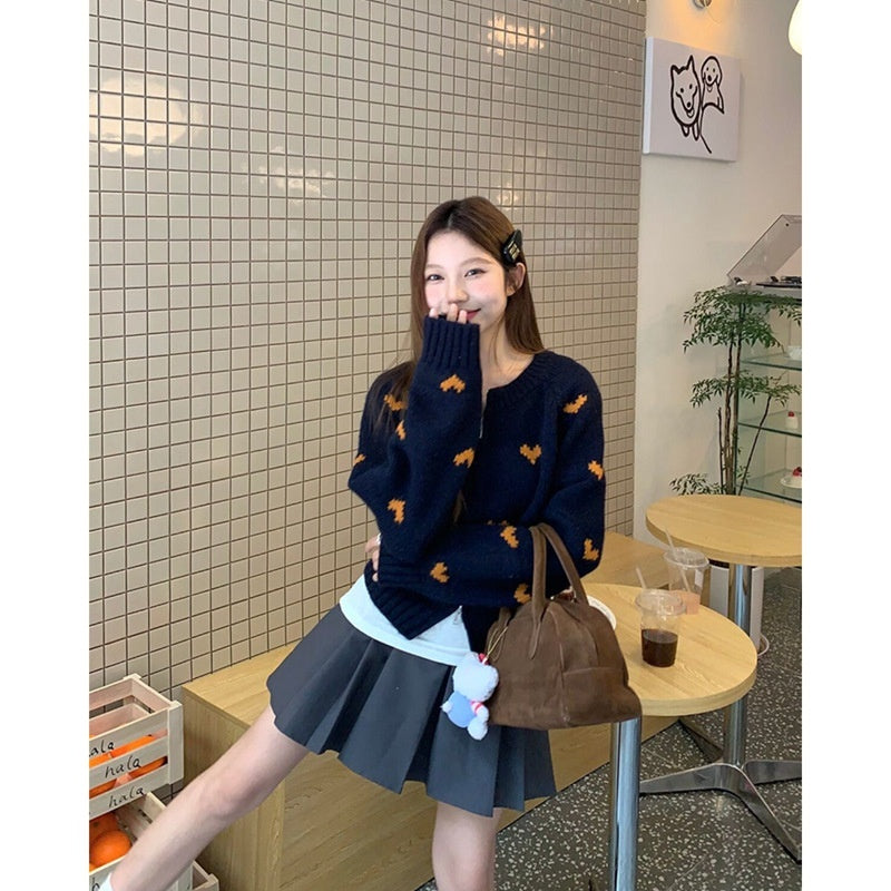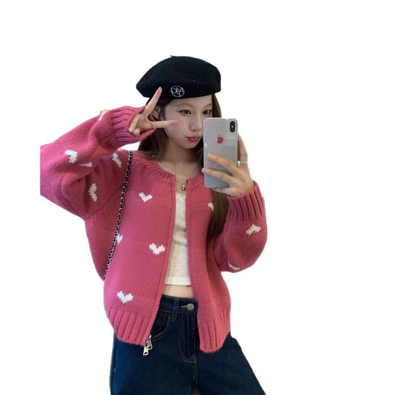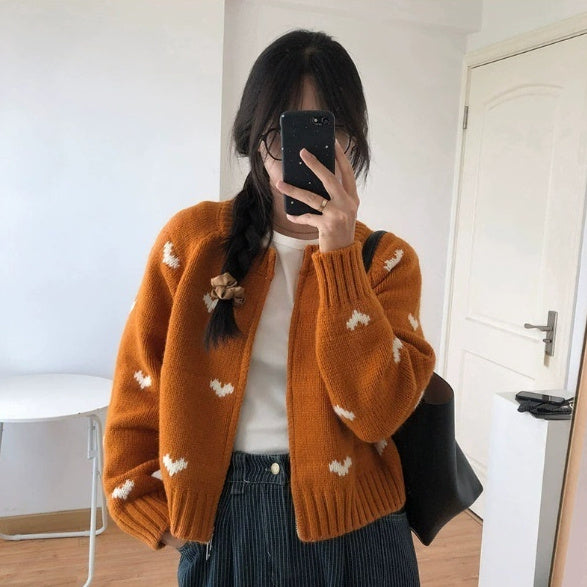 Sweet And Simple Love Long Sleeve Sweater Casual All-matching Short