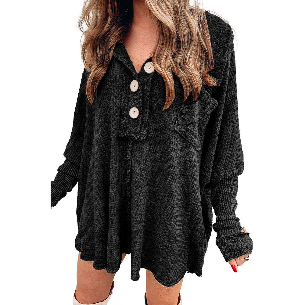 Women's Long-sleeved Lapel Versatile Mid-length T-shirt