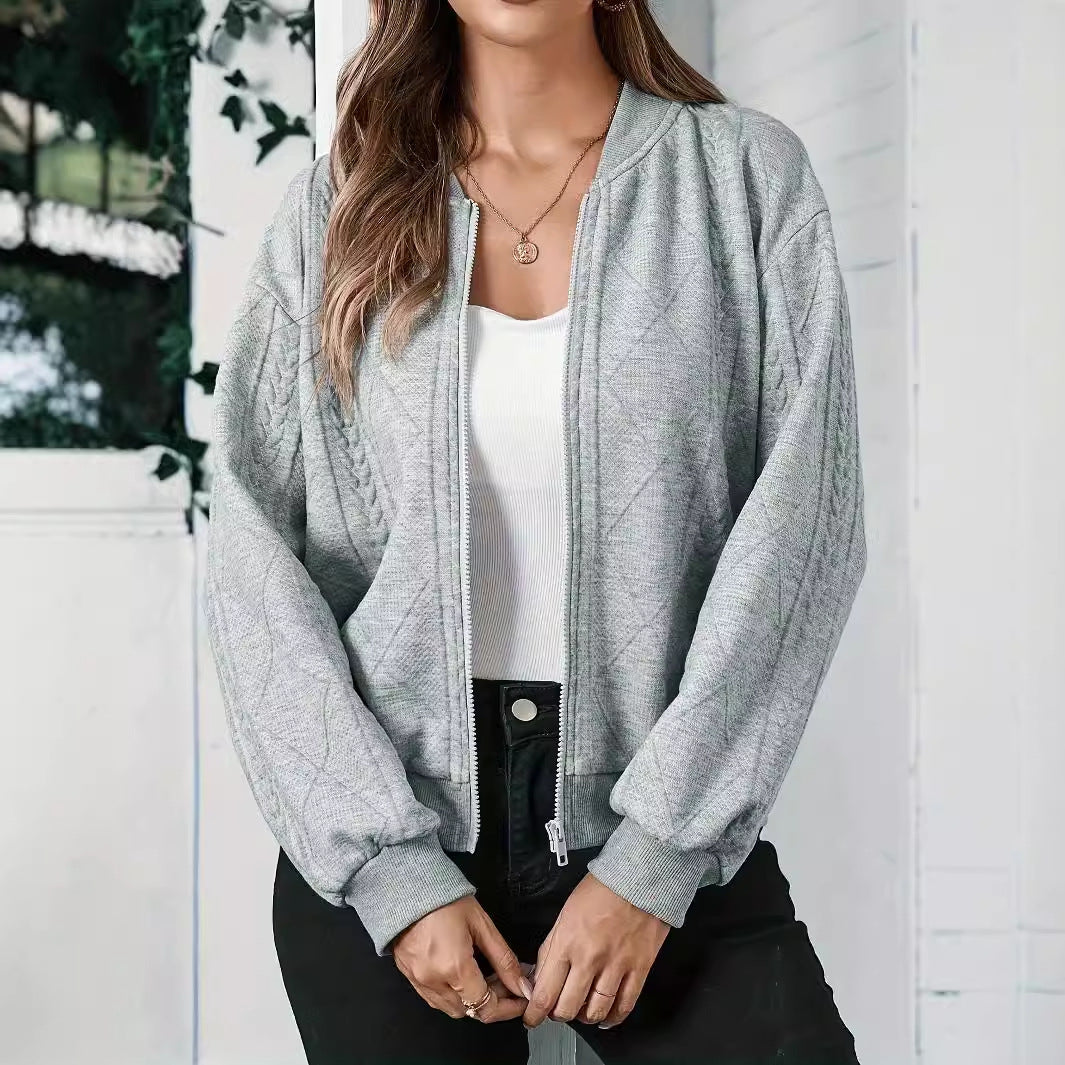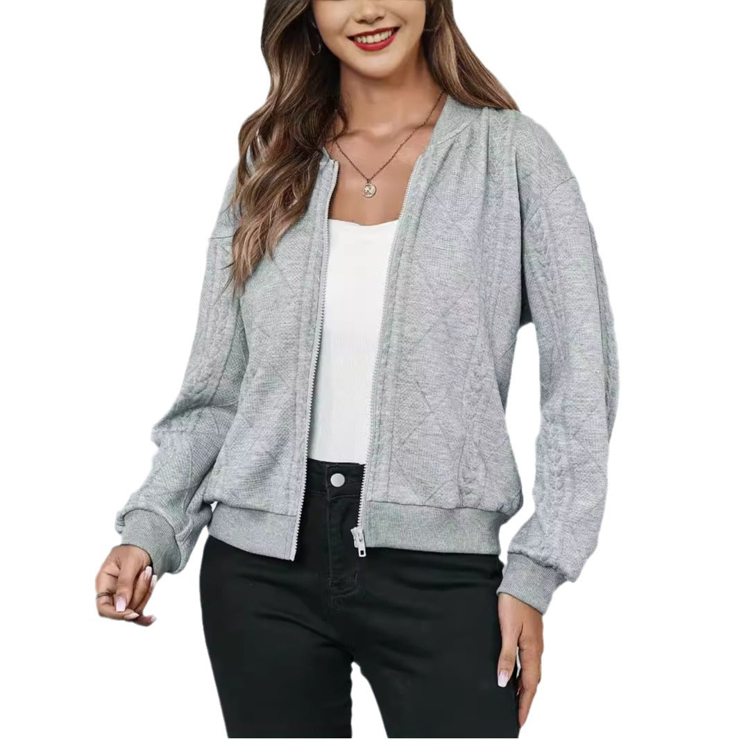 Women's Solid Color Zipper Long Sleeve Loose Jacket Casual Versatile
