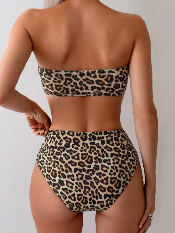 Women's Tube Top Bikini Leopard Print Sexy Swimsuit